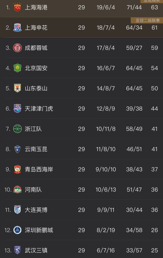 随着上轮成都蓉城退出争冠,联赛冠军再次确认留在上海。而卫冕冠军海港领先申花2分。末轮只要确保在客场不输给(取胜或打平)大连英博,就无需考虑申花的赛果,便能实现卫冕以及中超“三连冠”的伟业。
